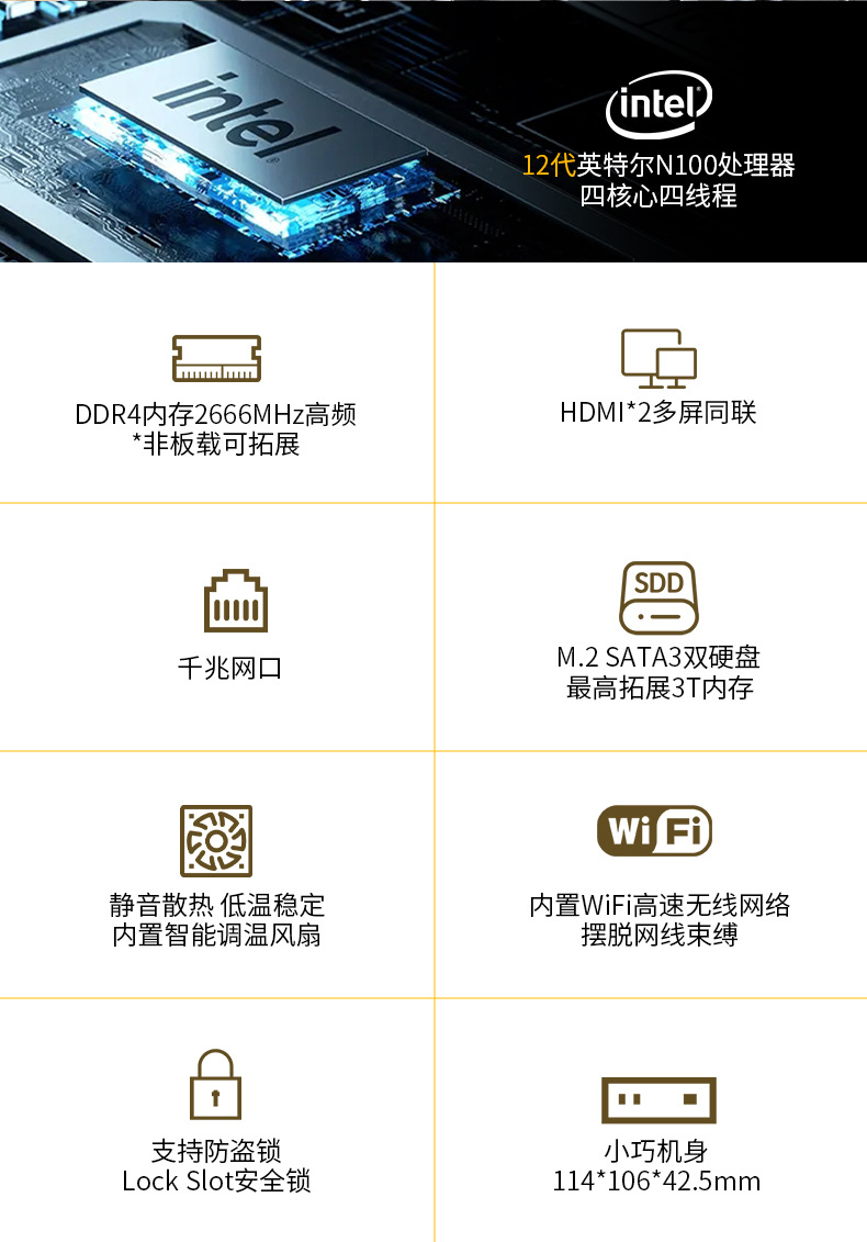SIBOLAN迷你主机12代N305办公电脑主机工厂直销外贸跨境min...¥1999.00