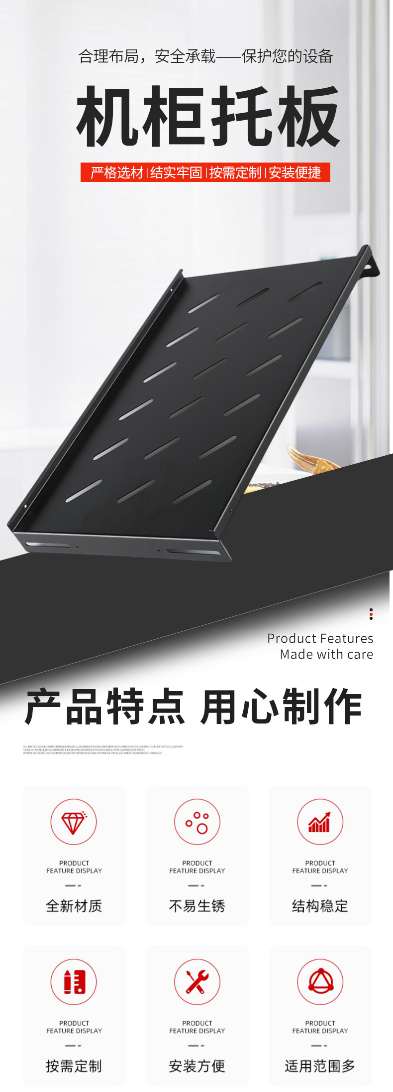 标准机柜托盘层板19寸网络机柜隔板服务器托架固定板定制机柜配件
